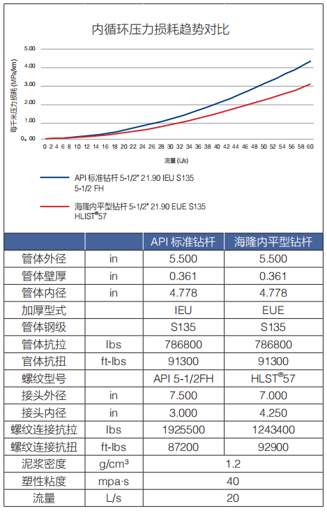 下面以 5 1/2" 21.9lb/ft S135 鉆桿為例給出內平型鉆桿與普通 API 鉆桿的比較: